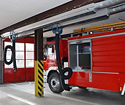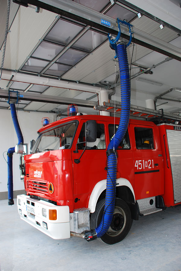 Speciální odsávací zařízení pro vozidla hasičských a záchranných sborů je samostatná skupina zařízení v nabídce Norfi. K dispozici jsou tři systémy s automatickým odepnutím přísavky pro vozidla s dolním i horním výfukovým potrubím a systém letištních hasičských vozidel s výfukem vzhůru.