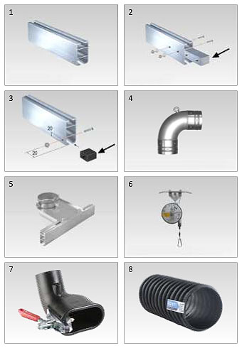 Odsávací kolejnicový profil "Track System" je kolejnicový systém, který je určen pro osobní vozidla a dodávkové automobily (O 100 mm). Používá se v automobilových servisních dílnách pro nejméně dvě servisní místa. Systém se skládá z hliníkového profilu o délce 6 m, po něm se pohybuje pružinový balancér s odsávací hadicí a tryskou. Tento kolejnicový systém lze zavěsit podél nebo napříč k servisnímu místu, hadici je možné ručně přesunout k vozidlu, od kterého je nutné odsávat. Uprostřed kolejnice je umístěn výstup pro odsávací potrubí výfukových plynů ven z haly. Ventilátor je navrhován zvlášť podle potřeby.