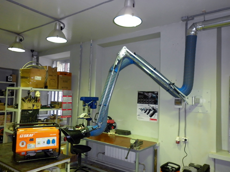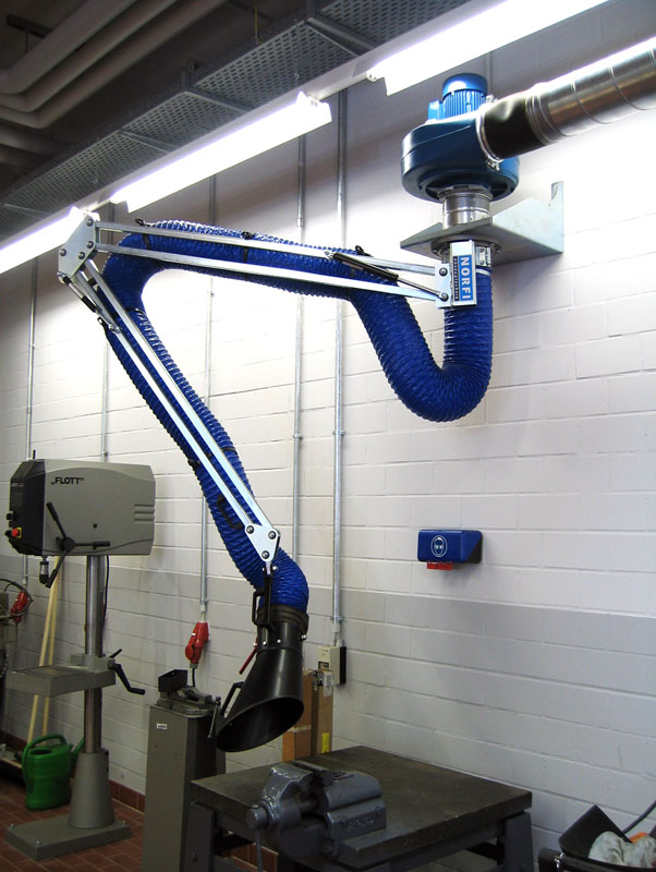 a prachu z technologických procesů svařování, broušení, řezání, leštění, odlévání, a pod. Má promyšlenou nosnou konstrukci oddělenou od odsávacích dílů. Nosné části ramene proto nejsou ovlivňovány nečistotami