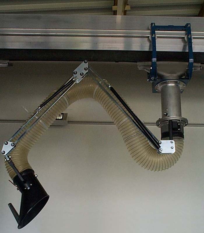 Odsávací rameno může být prodlouženo o další výložník. Maximální délka výložníku může být až 5 m ale dosah se může zvýšit až na 8 m s výložníkem vybaveným dvěma klouby pro snadné vodorovné nastavení polohy ramene.