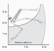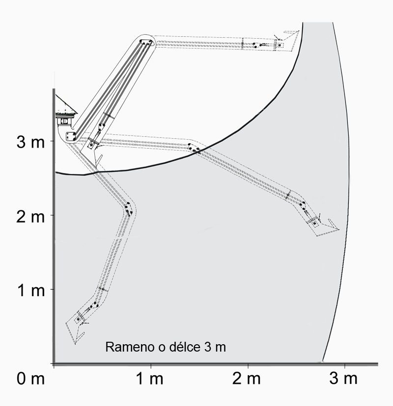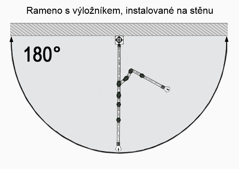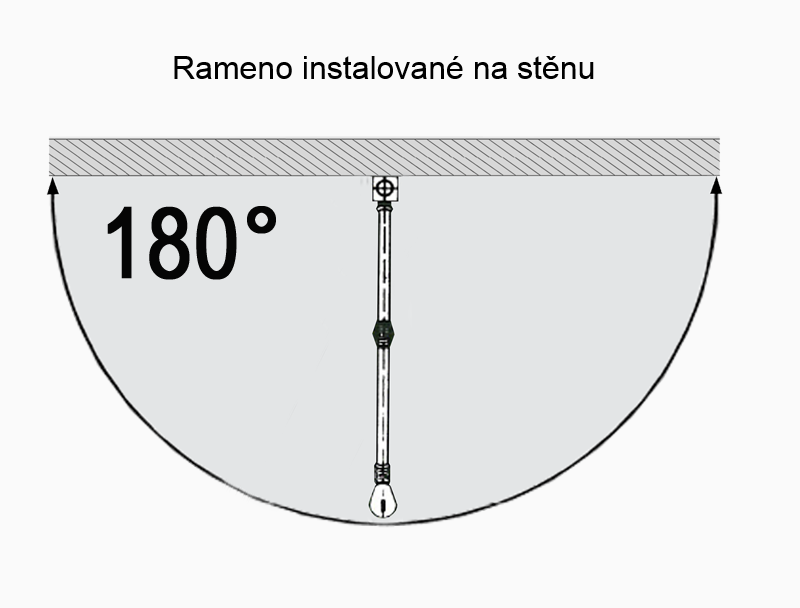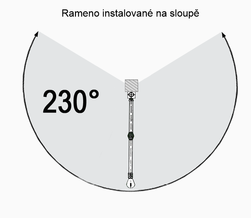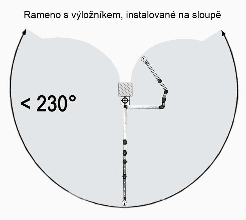V závislosti na rozsahu sestavy ramene může být úhel otáčení 180° při montáži na stěnu, nebo 230° při montáži na sloup.
