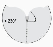 V závislosti na druhu sestavy ramene, může být úhel otáčení 180° při montáži na stěnu, 230° při montáži na sloup a 360° při montáži na odsávací vozík. Při použití prodlužovacího ramene je maximální úhel až 230°.