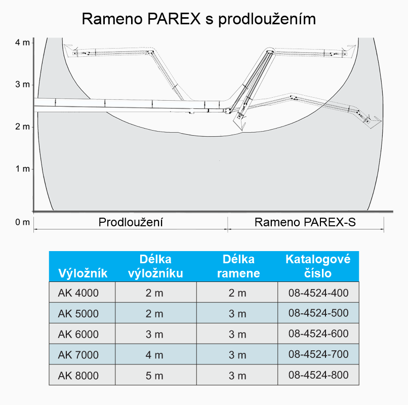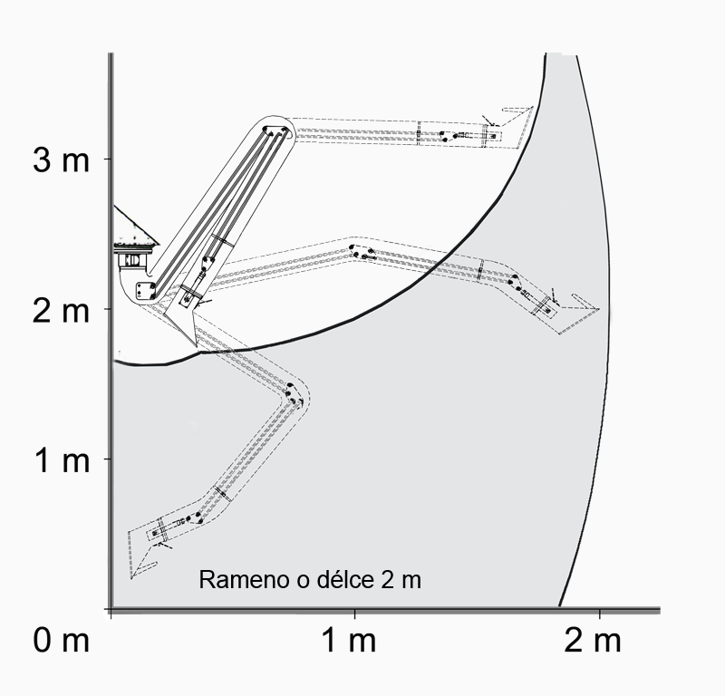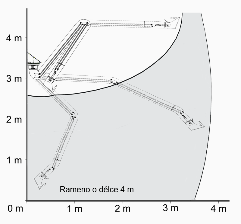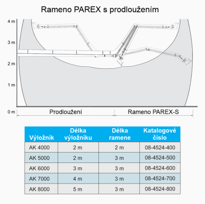 Dosah ramen PAREX s prodloužením v závislosti na způsobu instalace |