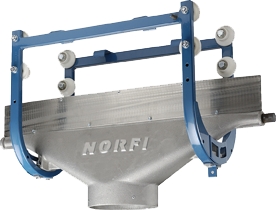 Vozík je prvek, který se pohybuje po kolejnici a umožnňuje odsávání výfukových plynů pohybujících se vozidel. Vozíky pro kolejnice NORFI jsou vyrobeny z litého hliníku a verze pro kolejnice ALU jsou také vybaveny pevným ocelovým rámem, ke kterému je instalováno osm kol s ložisky. Rám je také nosná část pro volitelné příslušenství, kterým mohou být vybaveny systémy NORFI. Patří mezi ně: pružinový balancér (vyvažovač) nebo elektrický naviják, systém automatického odpojení sacího nástavce, elektrický pohon vozíku , optické nebo ultrazvukové senzory vzdálenosti, pneumatický upínací systém sacího nástavce včetně zásobníku a další. Vozíky NORFI se vyznačují dlouhou životností (nepoužíváme plasty, které jsou náchylné k mechanickému poškození), všestranností (vozíky lze přizpůsobit a rozšířit , můžeme použít hadice o průměru od 75 mm do 400 mm a větší), spolehlivostí (dobře navržená konstrukce je prokázána na stovkách standardních a speciálních aplikací).