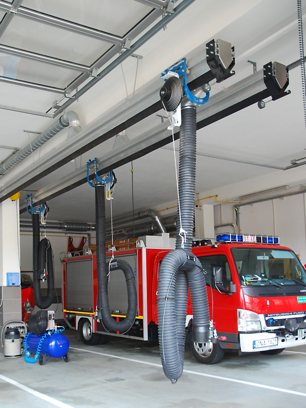 Kolejnicové odsávání výfukových plynů může být vybaveno systémem automatického odpojení sacího nástavce od výfukového potrubí. V nabídce NORFI je k dispozici systém elektromagnetický a pneumatický.
