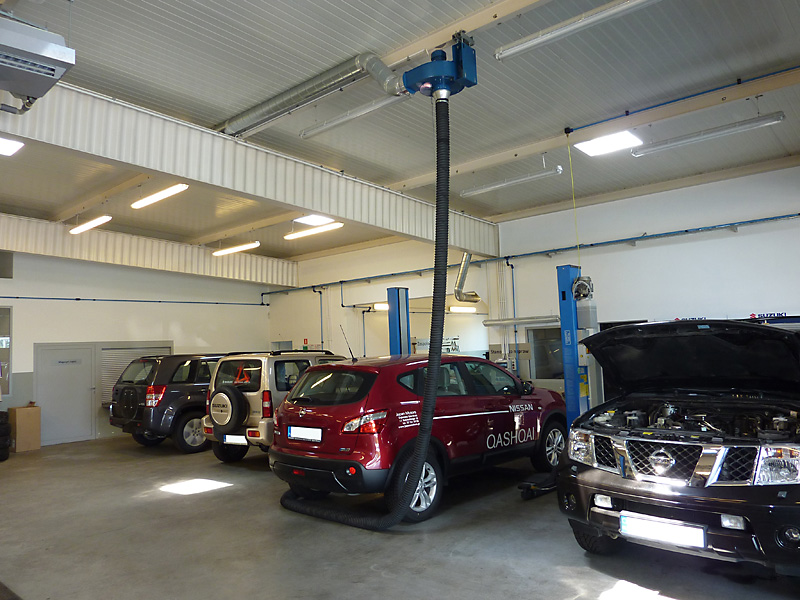 I když výrobci vyvíjejí stále více ekologické motory, přesto stále existuje ohrožení zdraví personálu, který pracuje v uzavřených prostorech jako jsou servisy a autodílny. Norfi řeší tento problém odsátím spalin přímo z výfukového potrubí automobilů ven, mimo objekt. Naše nabídka obsahuje odsávácí zařízení pro malé dílny i velké opravny, odsávání spalin jednoduché nebo bubnové, obsluhující jedno nebo dvě stanoviště, kolejové odsávací systémy Technorail nebo ALU, umožňující odsávání ve velkých halách s velkým počtem servisních stanovišť. Pro velké automobilové servisy je také k dispozici systém podlahový, kde jsou výfukové plyny transportovány potrubím instalovaným v podlaze.